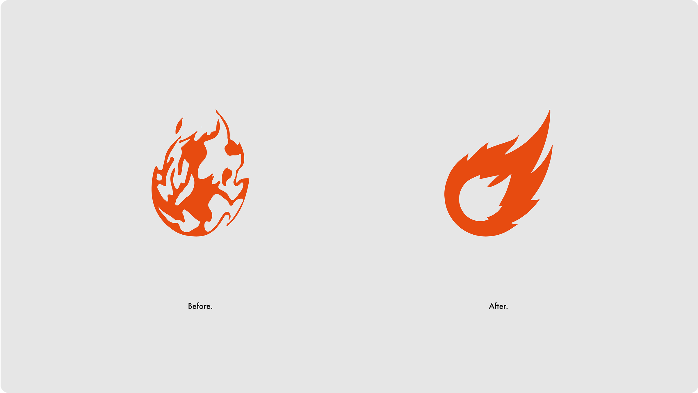 Modernising the logo mark was needed as it was very outdated; refined lettering, improved spacing, and a cleaner, more recognisable flame device.