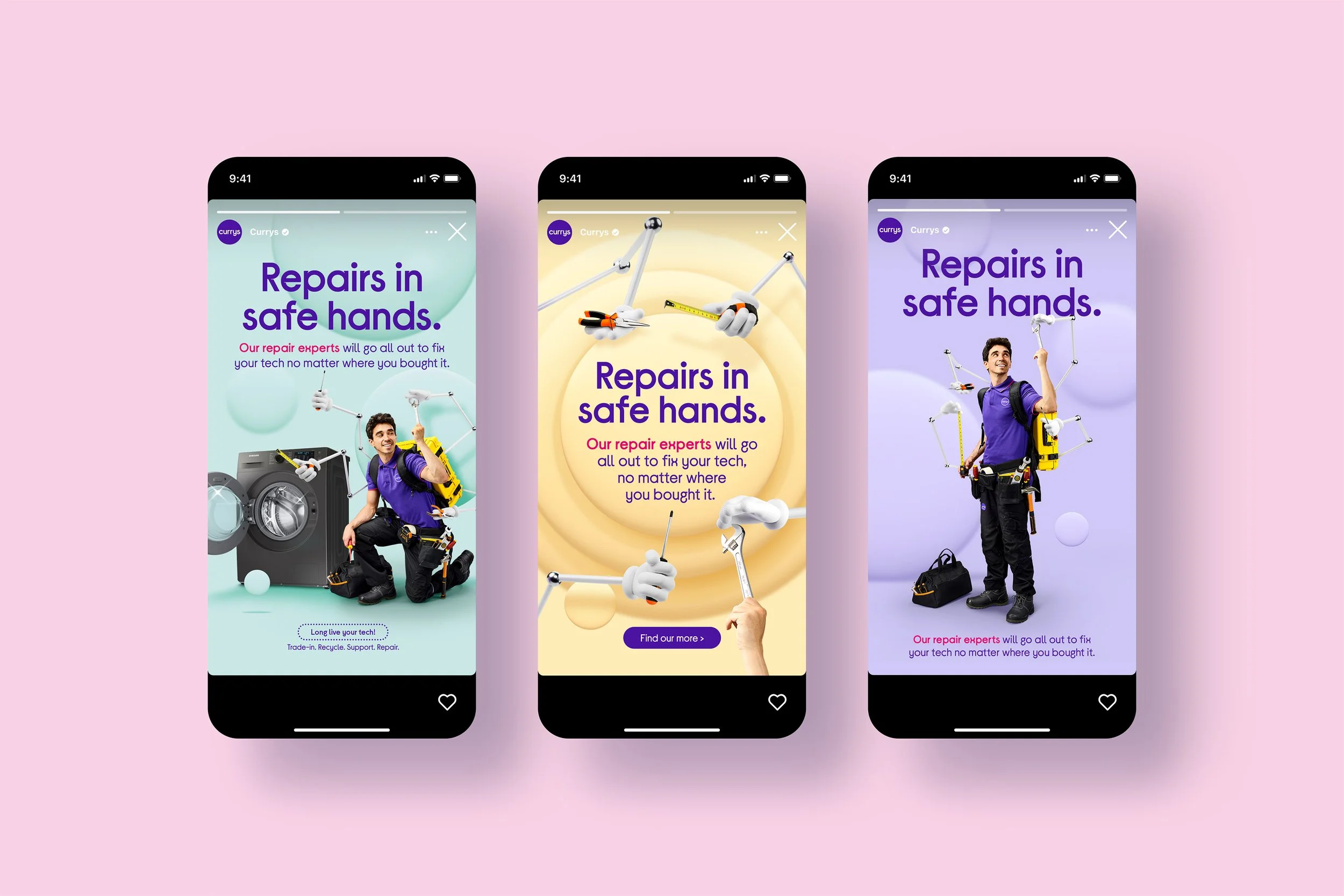 A distinctive and disruptive, ownable asset that that ties in well with the brand tone and concept in a creative way. More importantly conveying the sentiment of the brand values for its customers: a trusted place to use our super skilled repair experts.