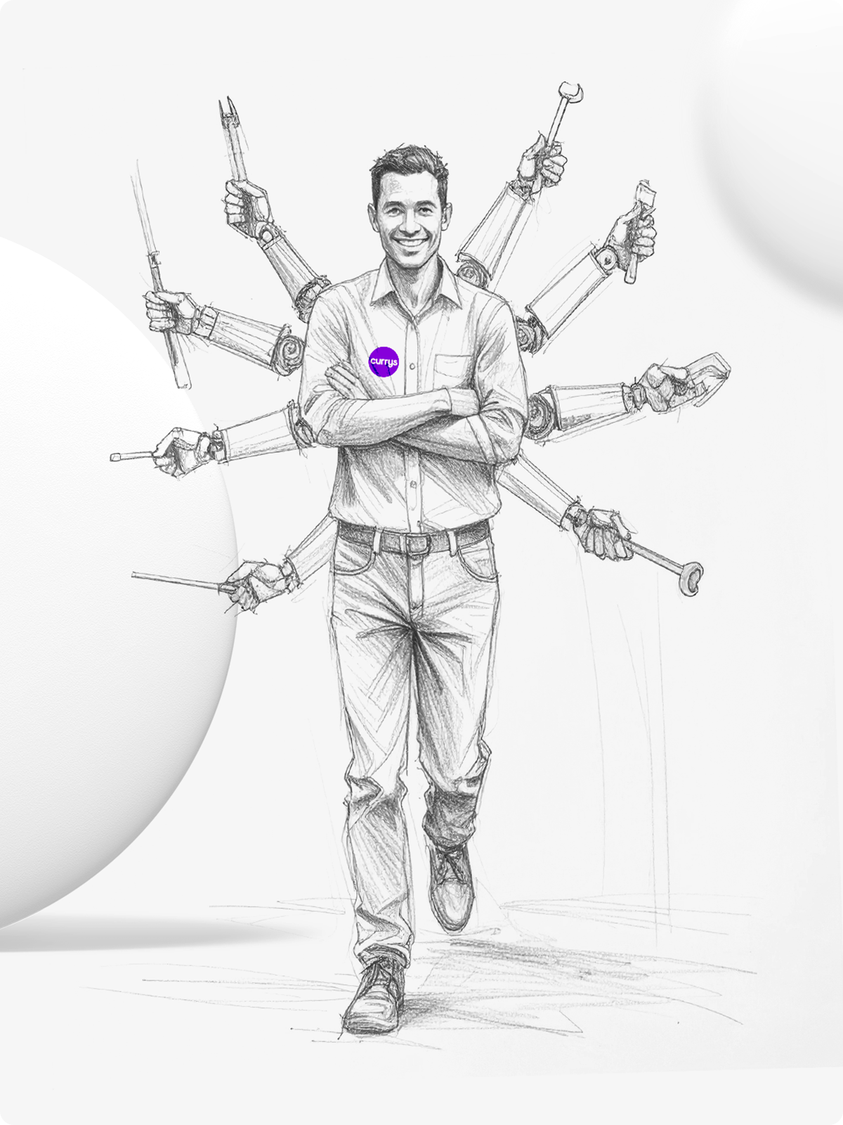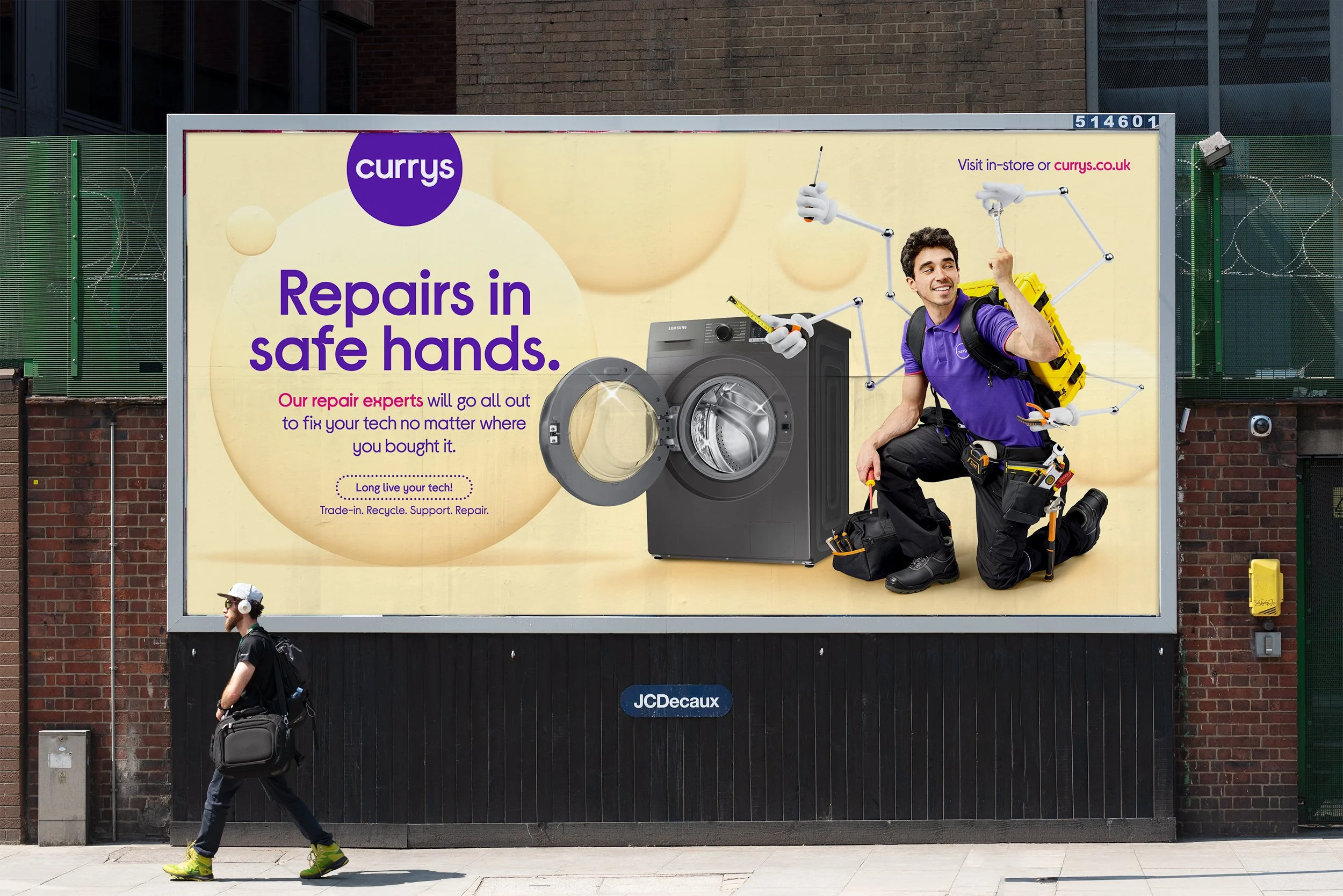 The narrative centres on the idea that Currys repair experts have every tool and expertise needed to get your tech back up and running again. The AI-powered mechanical arms is a huge play on the colleague as it visually exaggerates and represents their capabilities and reinforcing the idea that no job is too complex in an unexpected way – positioning Currys as the trusted experts for the job.