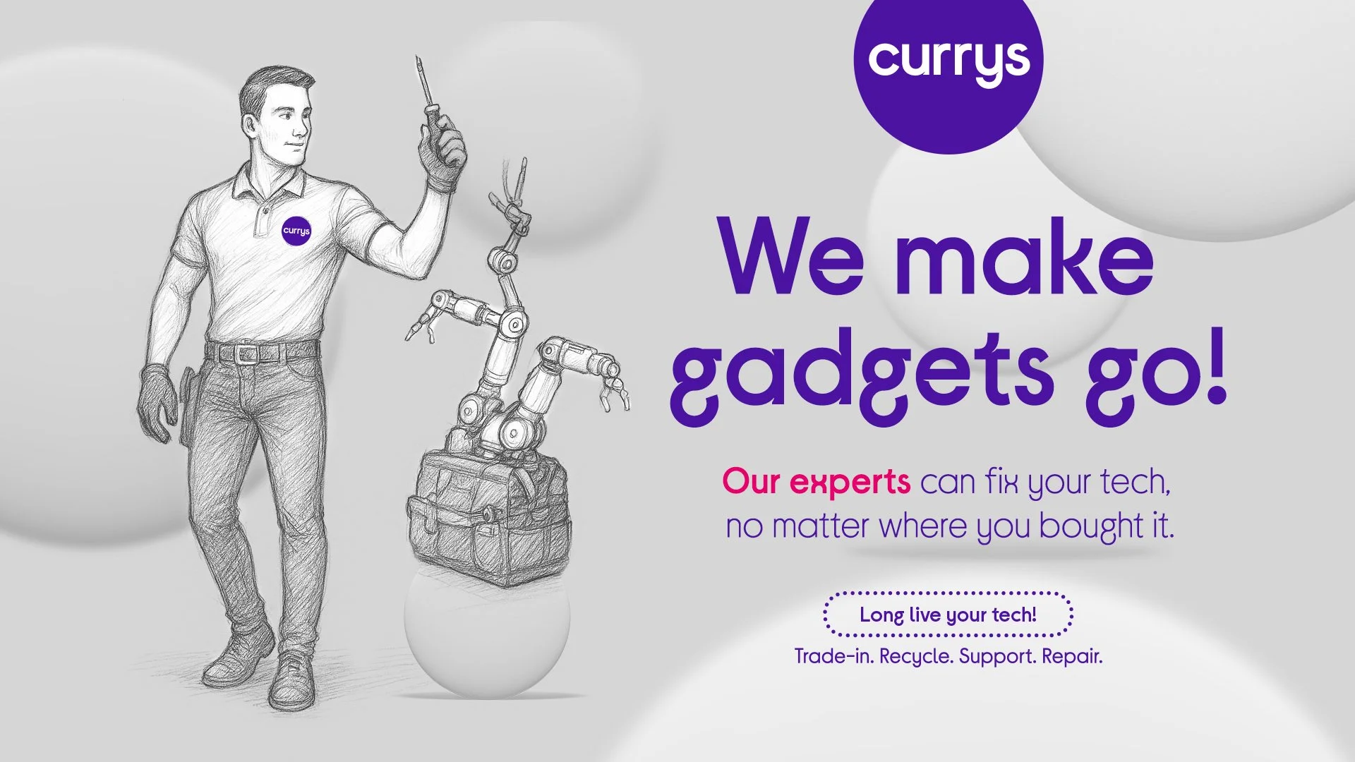 Develop a “Beyond Techspectations” campaign to reframe Currys’ repair service as part of the ‘Long Live Your Tech’ Brand proposition; driving awareness across in-store and digital channels, and reinforcing that Currys’ expert team is best trained and equipped to extend the life of customers’ tech.
