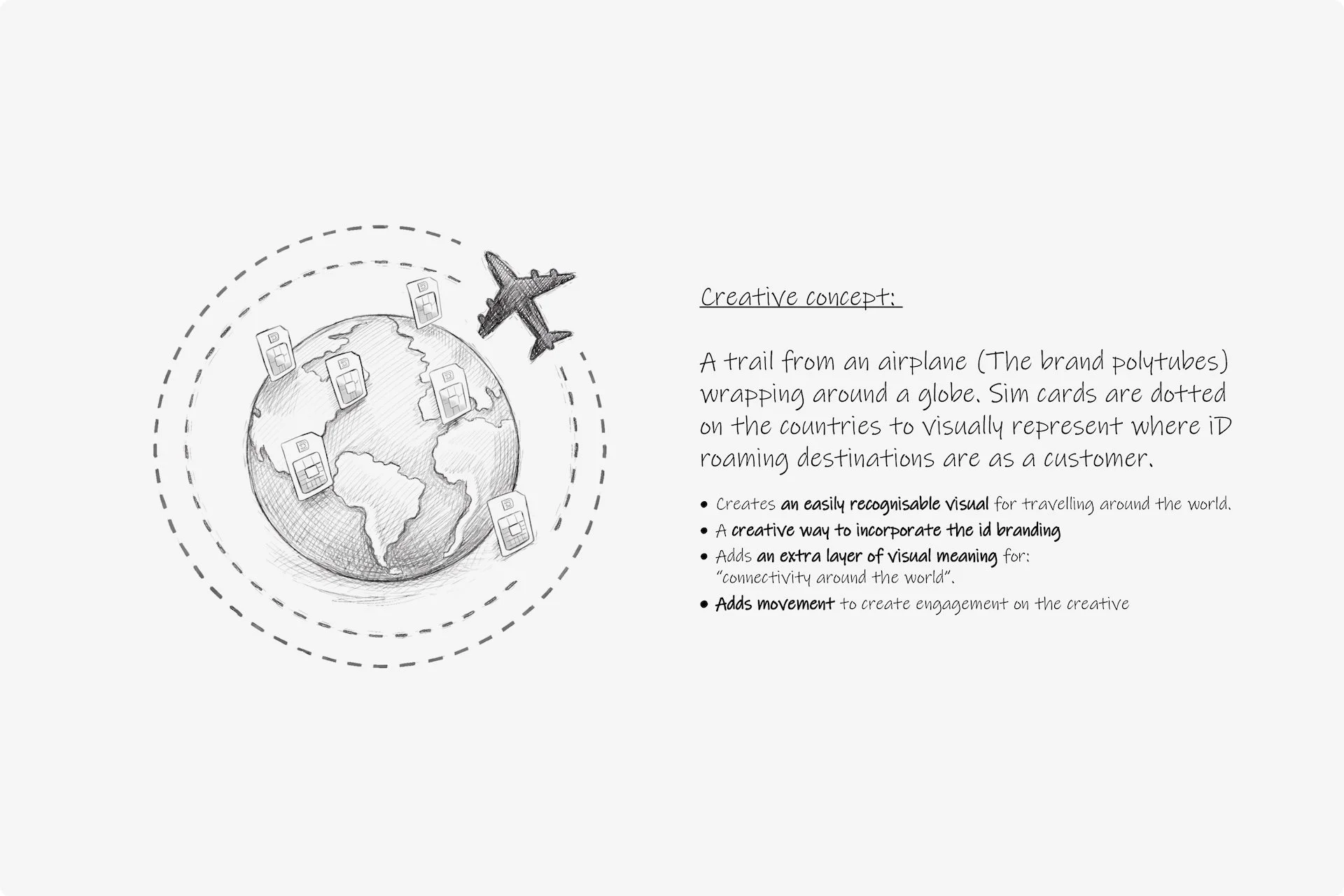 Removed SIM cards as map pins from original concept; avoiding scalability and recognisability issues. Instead heroing the SIM within the brand thumbprint asset to enhance prominence.